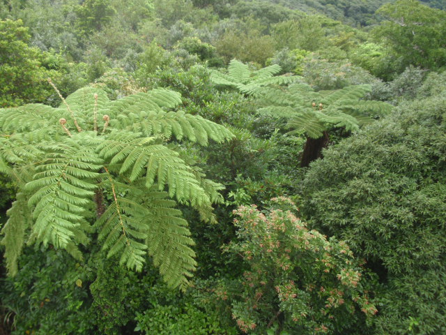 | 湿度の高さを証明するがごとく、展望台の階段は苔むしている。 大きいナメクジ(?)を、そこかしこに見かける。娘は悲鳴をあげる。 以下は、遊歩道での撮影である。 娘も初めての場所だったのだが、もう来たくないとのこと。  |